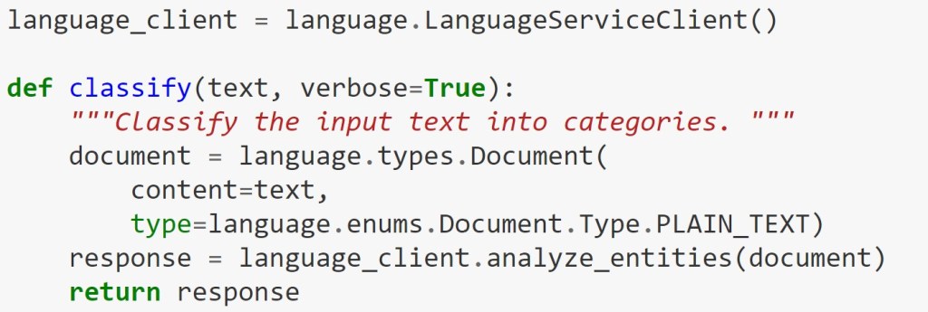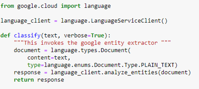 Each sentence is sent to the Google Named-Entity Recognition service with the following function.