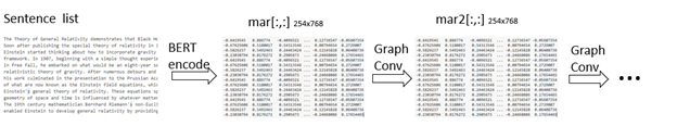 BertEncode: list(sentences1 .. N ) -> RNx768 GraphConv : RNx768 -> RNx768