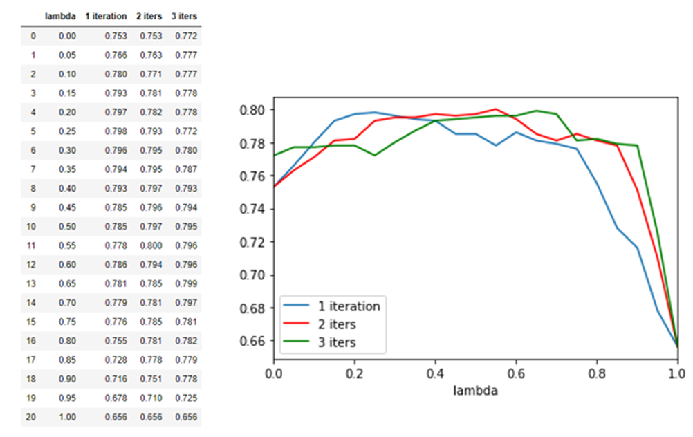 Recall that the convolution operator was defined by a parameter lambda in the range 0 to 1. We also ran a grid search to find the best value of lambda for 1, 2 and 3 convolutional layers. We found a value of 0.75 gave reasonable results. (note that when lambda = 1 the layers degenerate to no layers.)