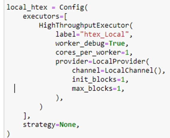 To illustrate executors, we have allocated an ubuntu “data science” vm on Azure that is an 8 core (4 real cores) server. We will run 100 instances of the pi program from above, but we will do this we different levels of concurrency. We would like to do this with maximum throughput so we will use the “HighThroughputExecutor” configured as