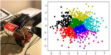 Figure 4. Jetbot device on the left and kmeans plot on the right.