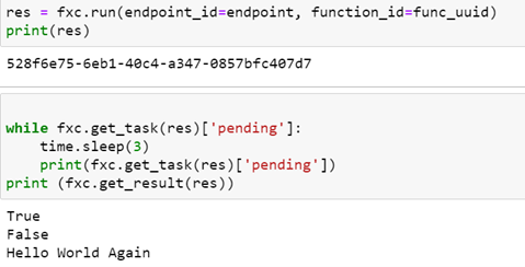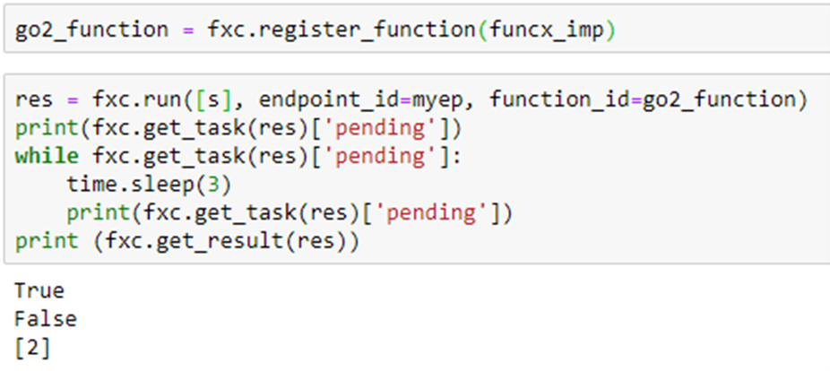 Once we have registered the function with the FuncX client and when we have the FuncX endpoint we can run the function.