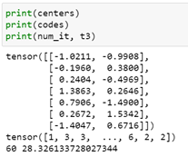 - Cluster is the main function that uses iteration to over the set of centers and codes