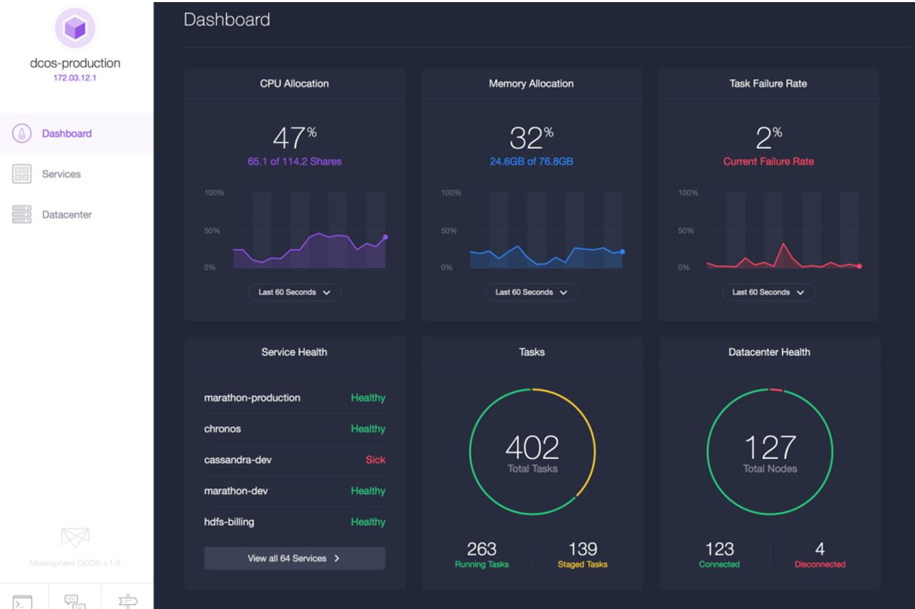 - Marathon: this is the “init system” for Mesosphere. It starts and monitors applications and services and it automatically heals any failures.